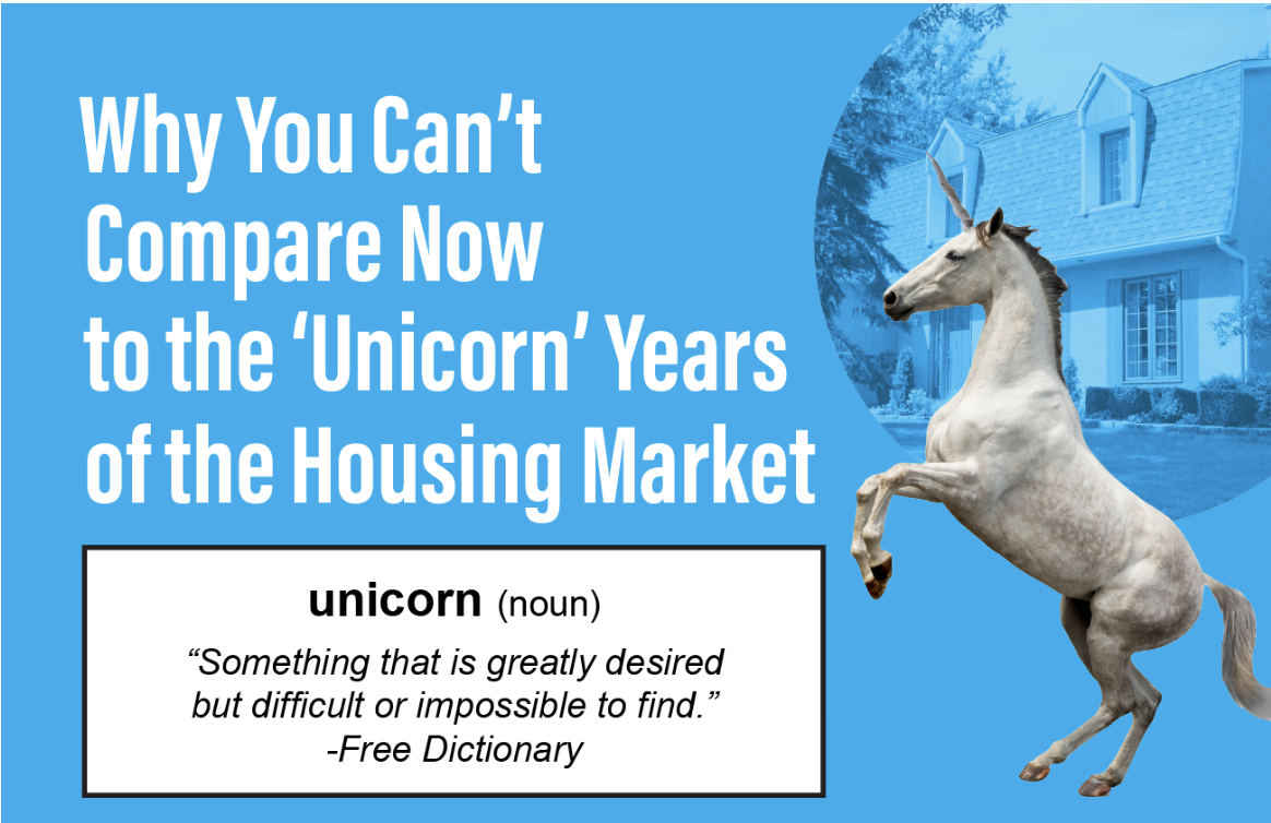 Comparing housing market metrics from one year to another can be challenging in a normal housing market – and the last few years have been anything but normal. In a way, they were ‘unicorn’ years.